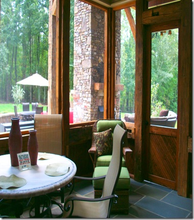 This is the screened in porch with the slate floor and the door leads you outside to the covered porch and to the outdoor terrace.